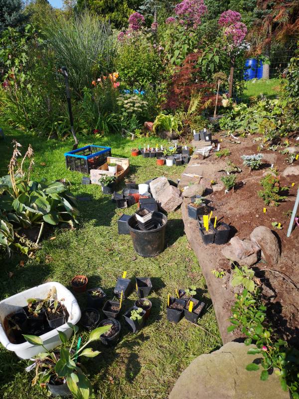 Coś jednak wykrzesalam z siebie. Jedna rabata po prawie 2 miesiącach zreorganizowana nassadzeniowo.. Druga usypana, całkiem nowa, nówka funkiel nie śmigana (kocham Cię Pawełku) Bo powiem tak ja bym ją usypała, a jakże, kiedyś, potem, nie wiem kiedy, albo wcale
