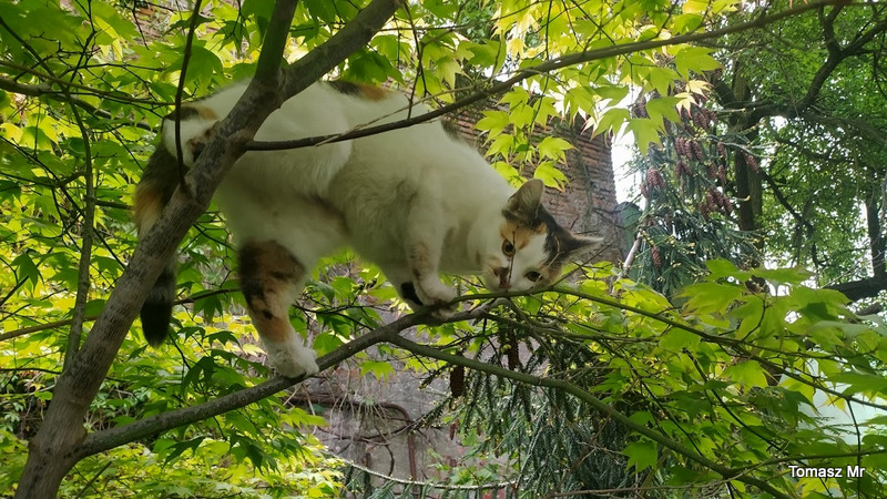Ta jaśniejsza lubi drażnić sroki. Wchodzi na czubek gruszki i ogląda je z bliska...robią harmider na pół ulicy