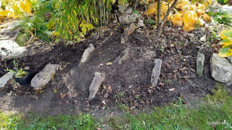 Tomek, mech pojawi się z czasem. Można smarować kamienie czy pniaki jogurtem z kawałkami mchu, ale u mnie po tym zabiegu szału nie było.