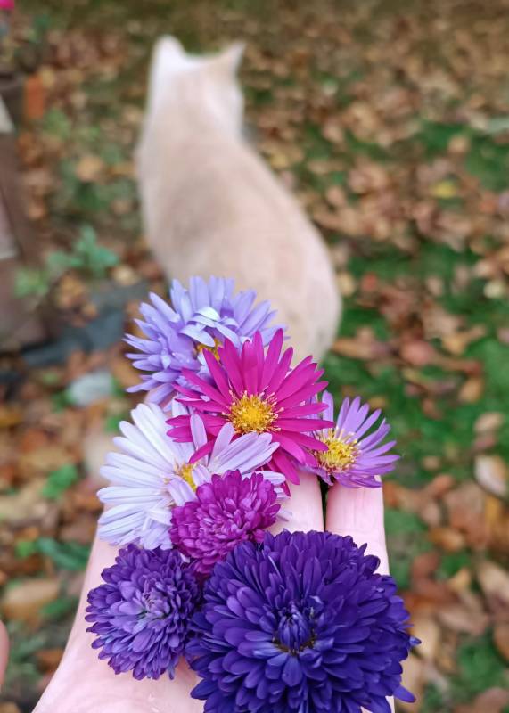 Z daliami nędznie, przymrozek na szczęście nas ominął, ale te 2 stopnie w nocy im nie służy, zacznę wykopywać i niech podeschną w tunelu. Astry nie chcą kwitnąć, zanim się rozbujają mączniak je dobije... wszystko już takie zgniło bleeee, choć potencjał jeszcze był... mega rok na orzechy, jabłka też dały czadu, zostało pozrywać i przerobić.