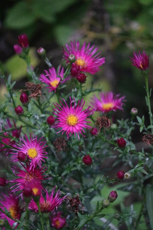 Cudowne kolory astrów .....u mnie szkód pogodowych też nie zanotowałam ,dalie mają liźnięte liście ,ale kwitną dalej....ja dzisiaj sadziłam cebulowe i zakopywałam donice z młodymi liliowcami ,dzięki Twojemu info dokupiłam kolejne dwa paproty chociaż wybór słaby był ,ale i te cieszą 2smiech