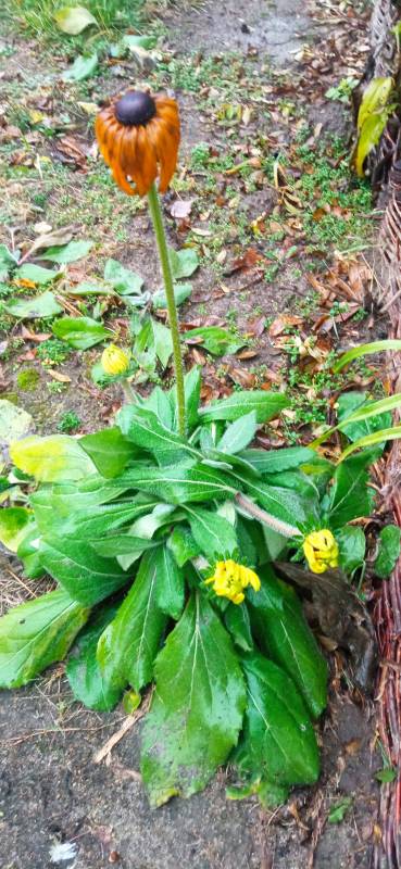 Rudbekia samosiejka- wyrosła a betonowej płycie, bardzo chce zakwitnąć