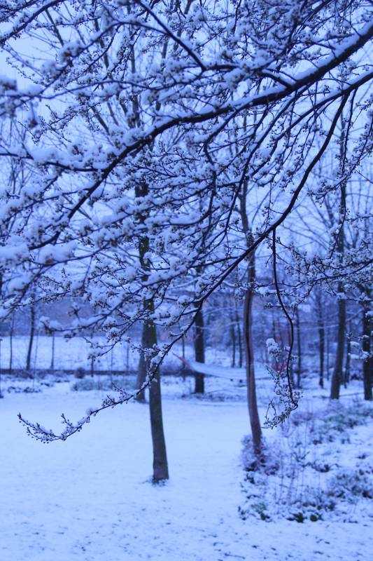 przez cała zimę nie padał u nas śnieg.. poprószył dopiero ostatniego marca, kiedy mirabelki już w rozkwicie. pamiętam 1 maja w latach osiemdziesiątych, kiedy sypał śnieg, gdy jako nastolatka szłam w pochodzie pierwszomajowym