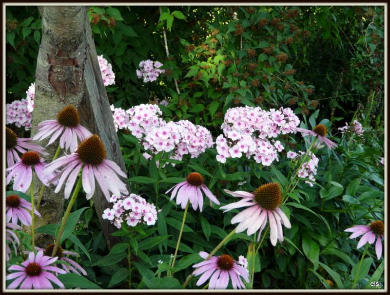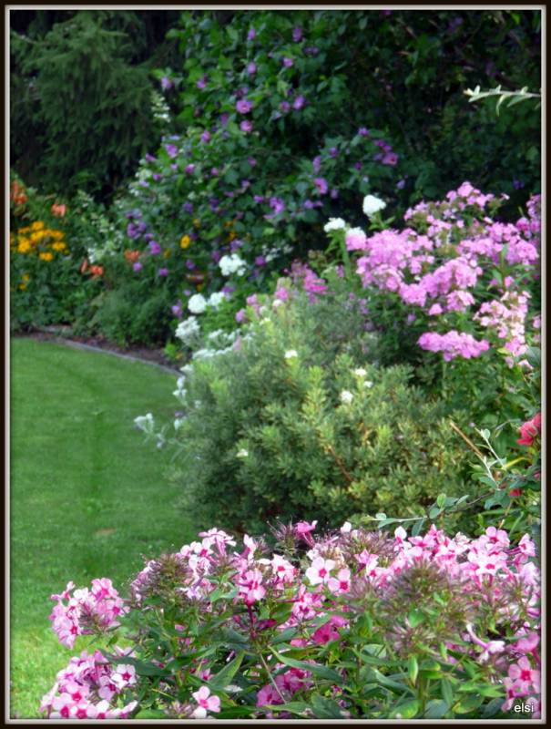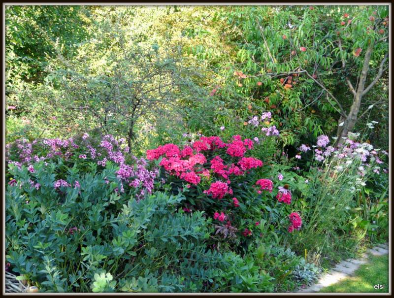 Kwitną też inne piękne rośliny, ale ogród, zmęczony upałem, nie ma już tej świeżości.