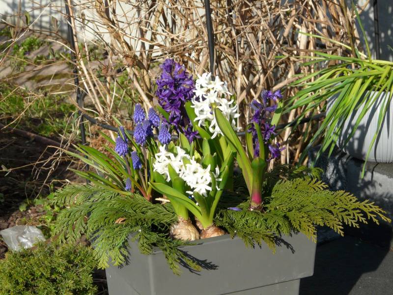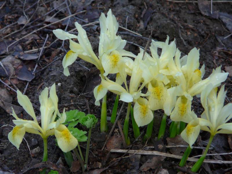 Przekwitły dość szybko irysy żyłkowane (kwitnie jeszcze jeden żółty, zapomniałam nazwy, bo to chyba nie jest złota Kaśka, bo ona kwitła wcześniej) i nieliczne krokusy, pominięte przez gryzonie.