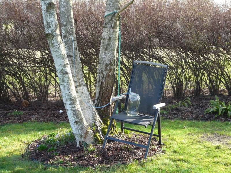 Zaczęliśmy toczyć sok z brzozy. W sobotę i niedzielę rozdawałam sąsiadom, bo przez ciepło spływało po 4 litry na dzień i tyle samo na noc. Ostatnie dwa dni było tylko ok. litra z taflą lodu na wierzchu.