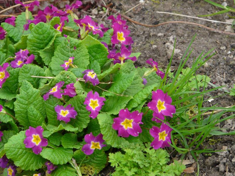A ogród sobie nic z tego nie robi, co ma kwitnąć, to kwitnie, np. pierwiosnki; niektóre jeszcze z rodzinnego ogródka, inne z wysiewu, albo kupione czy z wymiany.