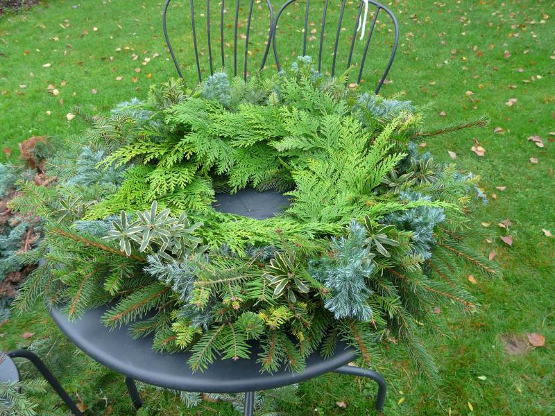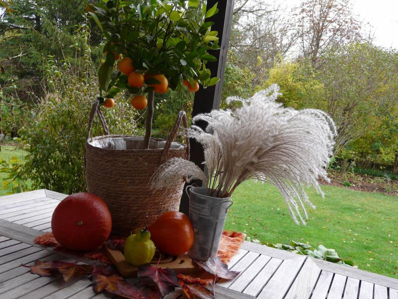, na tarasie zostały wiechy trawy, szyszki i kasztany.