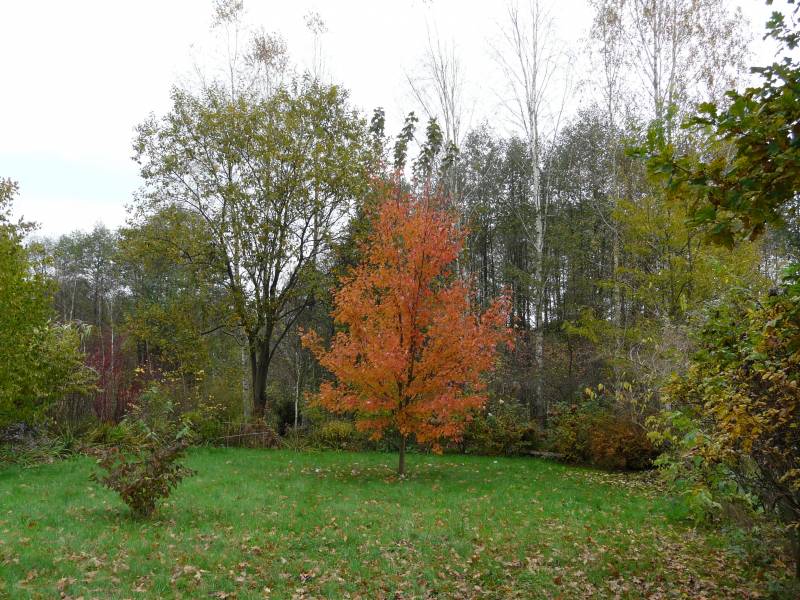 Szkoda tylko, że kilka tygodni temu przeszła wichura i pozrywała kolorowe liście, klon Red Sunset nie zdążył się nawet całkowicie wybarwić, albo ja nie zdążyłam na widowisko, nie było mnie w domu kilka dni i gdy wróciłam, stał już prawie goły.