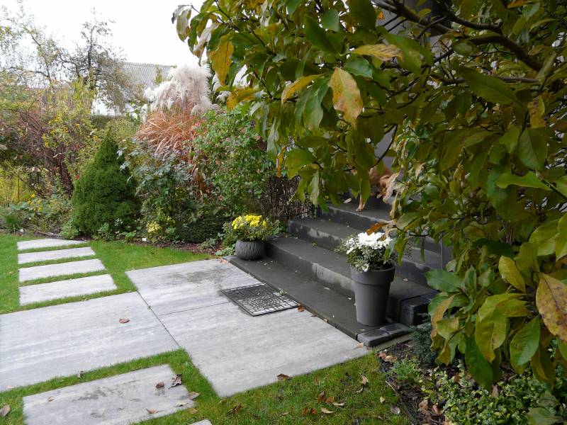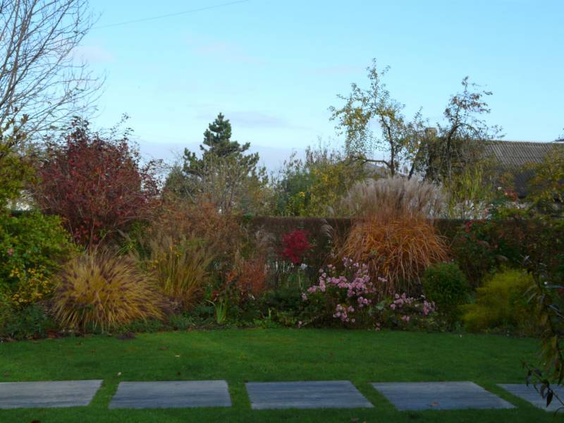 To dzisiejsza fotka, widać jeszcze nieco koloru w ogrodzie a trawnik zieloniutki jak w maju.