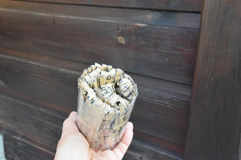 A następnie włożyłam tekturę do odciętej butelki: