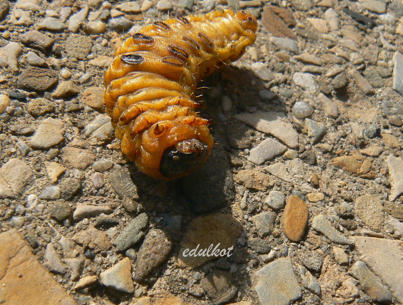 pierwszy raz w październiku 2012 przy kopaniu znalazłam kokony - dość elastyczne ale mocne poduszeczki z gąsienicami w środku