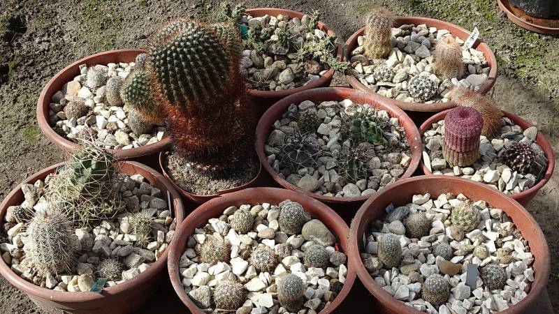 Tu w większości mammillarie (po prawo), na pierwszym planie po lewo chmaecereusy, a w głębi rebucje i sulorebucje.