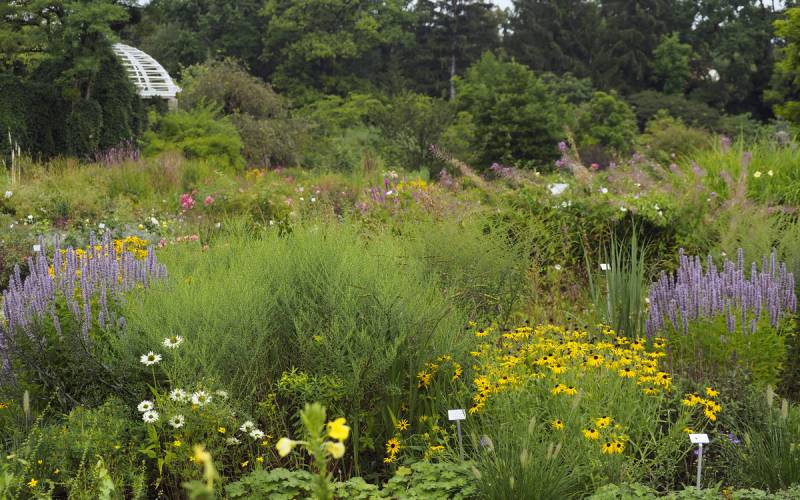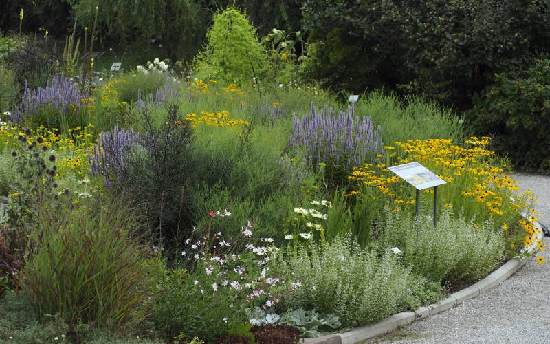 Oprócz uporządkowanych rabat można jednak odnaleźć w ogrodzie także trochę dzikie części poświęcone poszczególnym krajobrazom i ekosystemom.