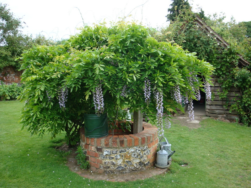 Studnia obrośnięta wisterią. W studni zamontowana jest pompa. Sądzę że trawnik w lipcu 2018 zawdzięcza jej swój zielony kolor.
