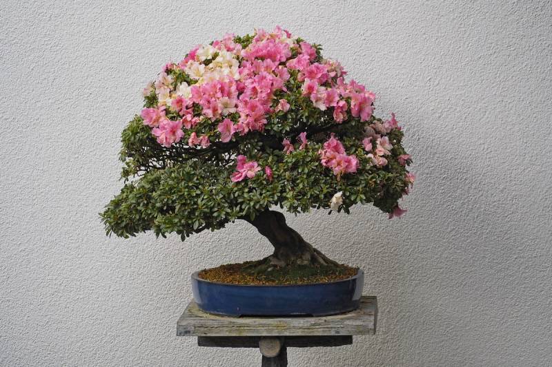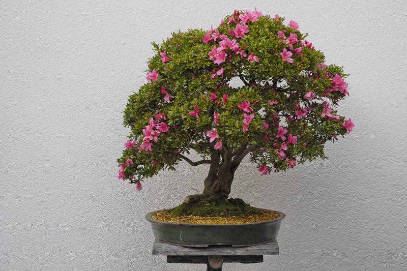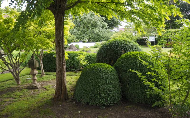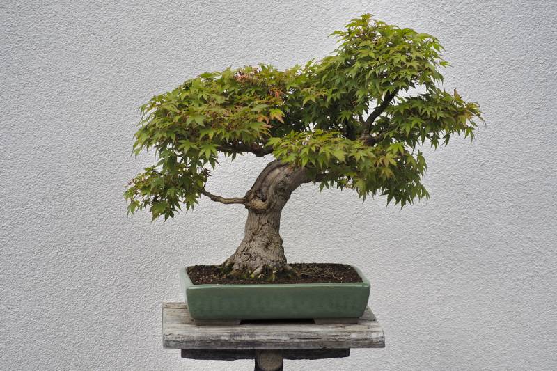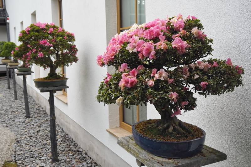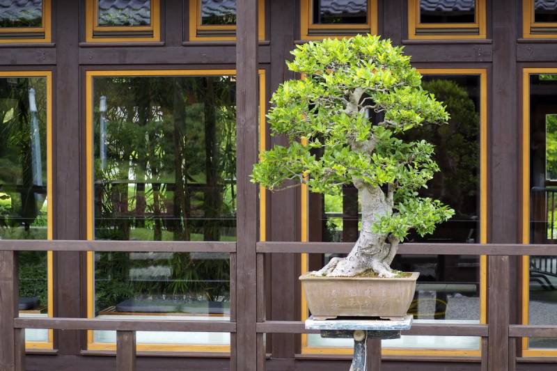 Przy pawilonach eksponowana jest naprawdę warta obejrzenia kolekcja bonsai.