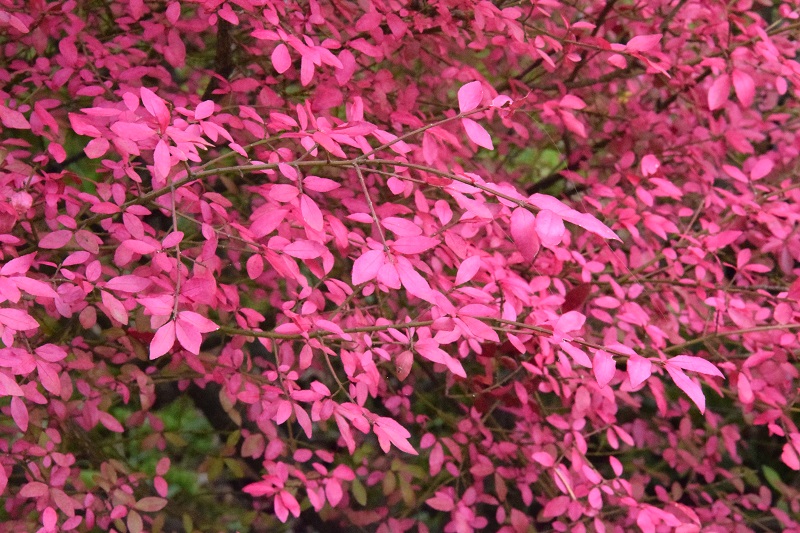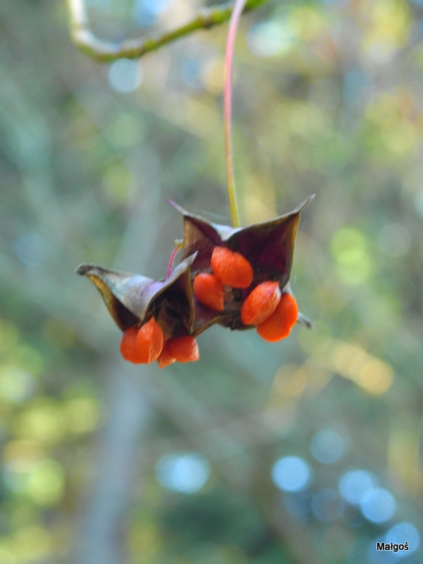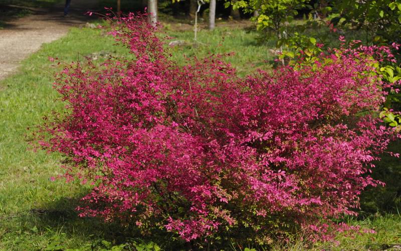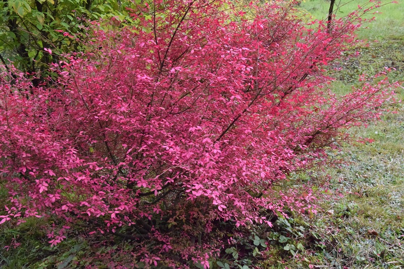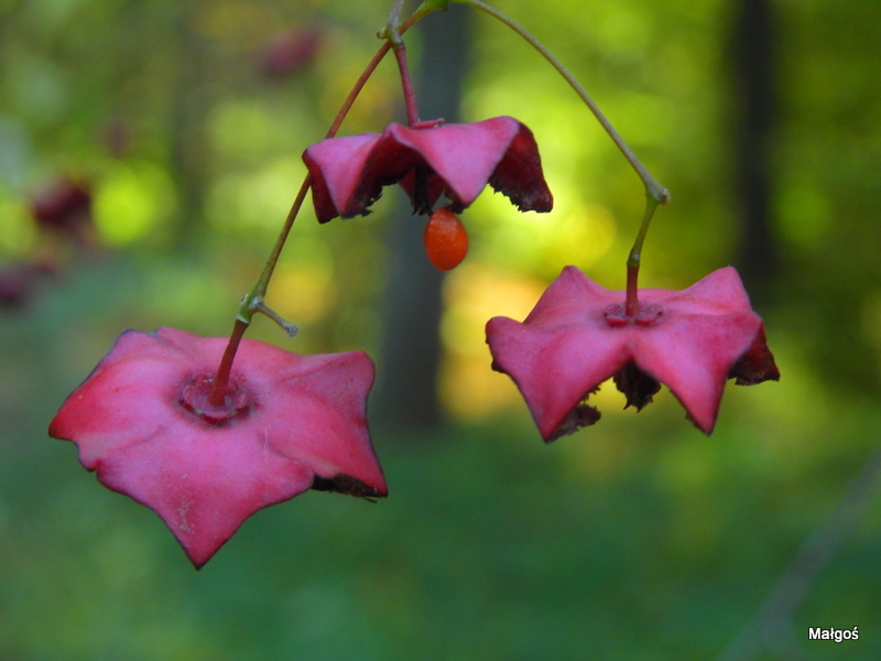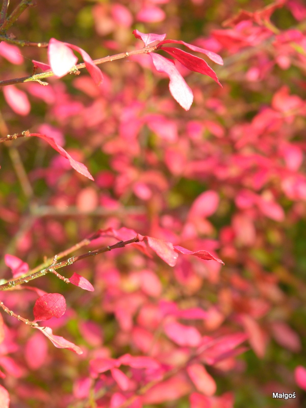 Tę alejkę trzmielinową zauważyłam po raz pierwszy. Oczy przyciągają różowe owocniki , głównie trzmieliny Hamiltona w odmianach. Coś pięknego.