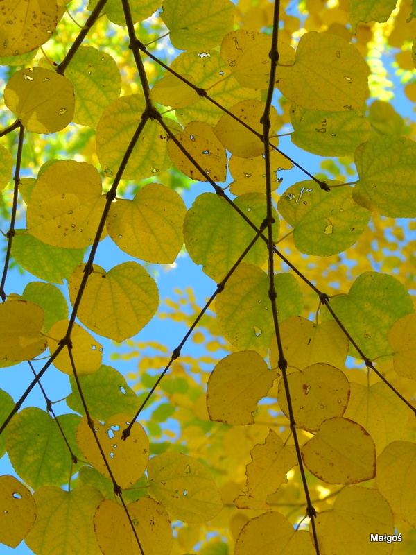 I znów kolory, kolory. Liście zaścielaja ścieżki, żałujemy, że słońca nie ma.