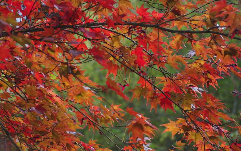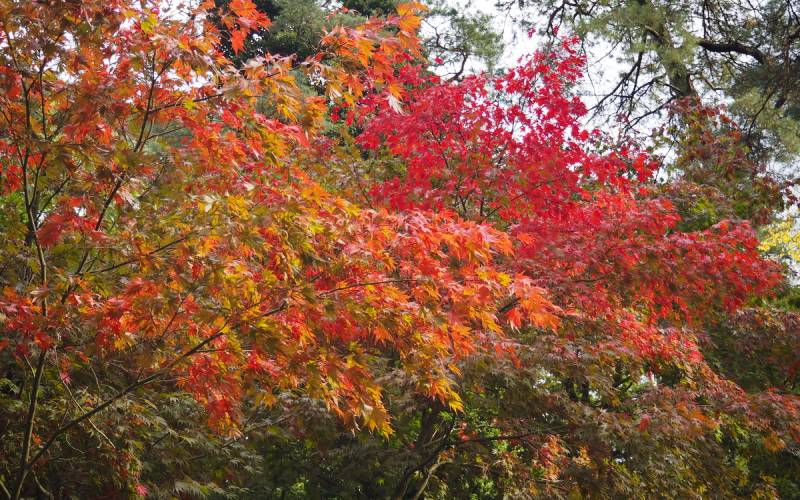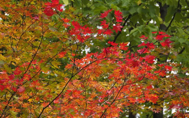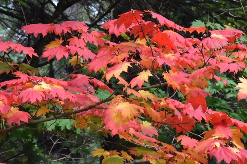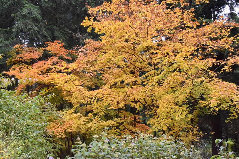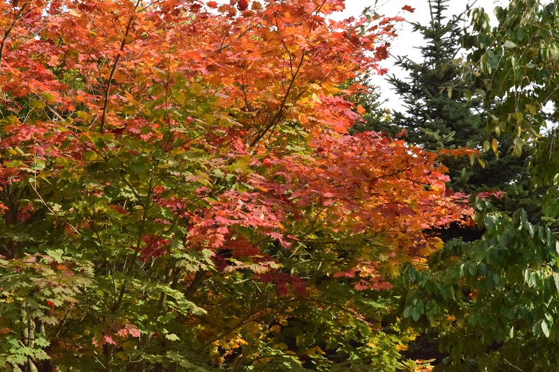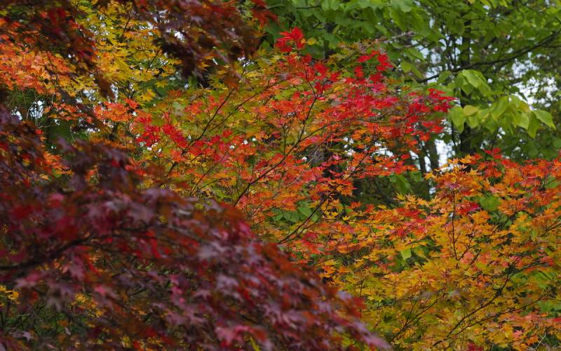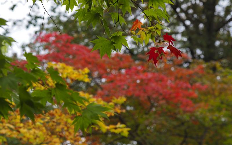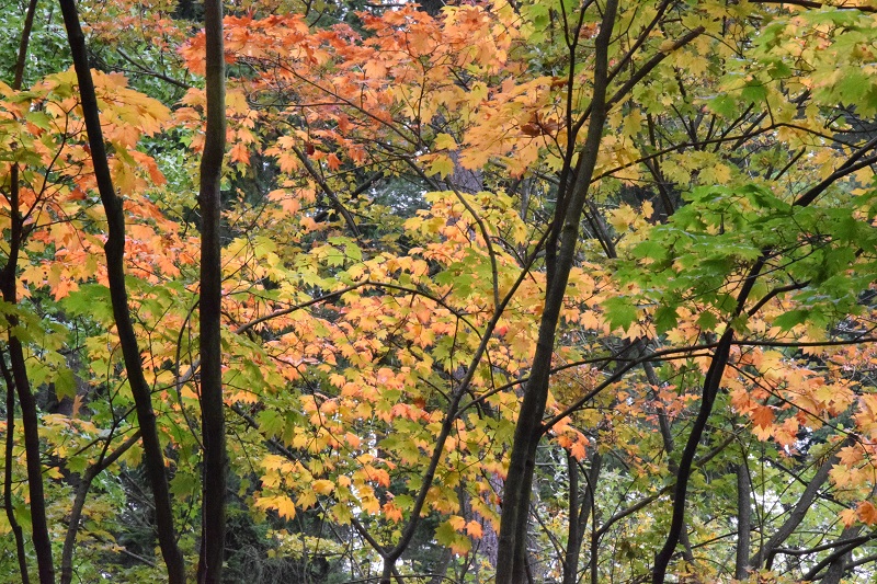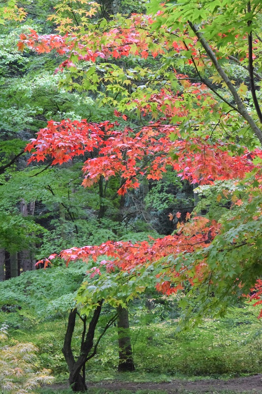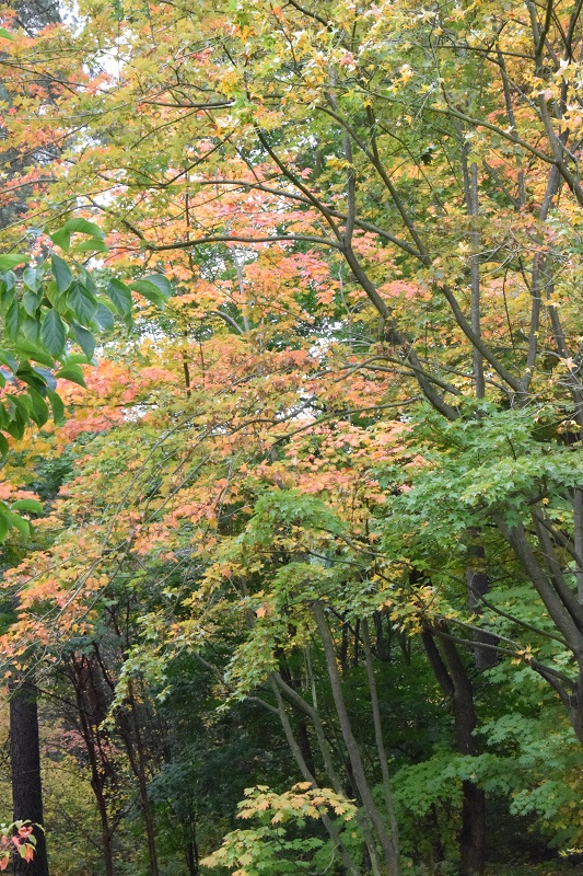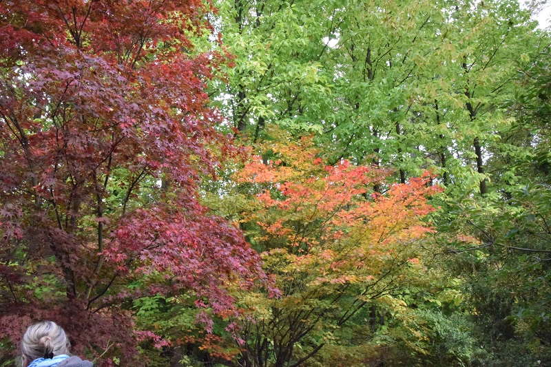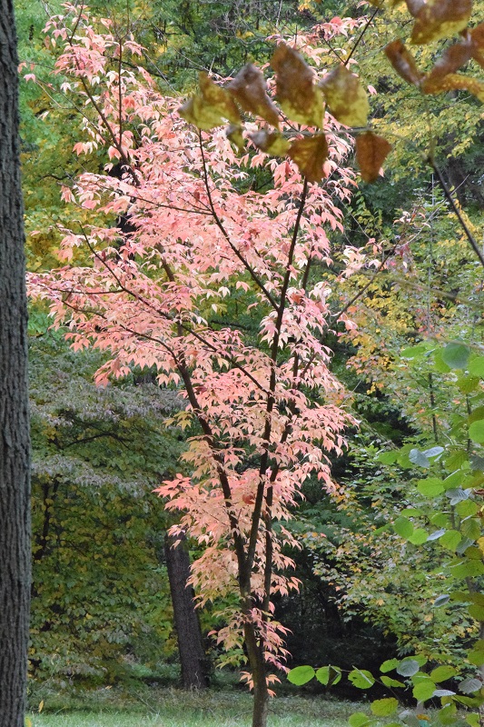 I rok później. Arboretum w Rogowie z wczoraj. Pochmurno, ale nie padało, choć straszyło. My po spotkaniu Polskiego Towarzystwa Dendrologicznego poszliśmy na kolorowy spacer. Najwięcej barw oczywiście dają klony, ale przebarwiają sie i azalie i tulipanowce.
