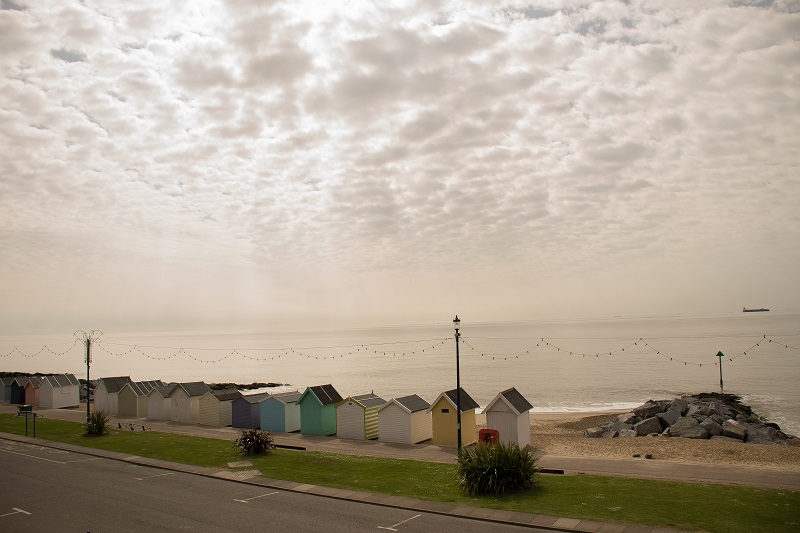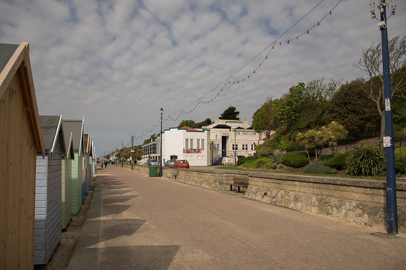 Deptak i pastelowe domki plażowe