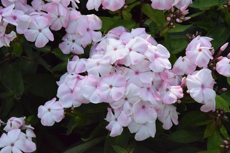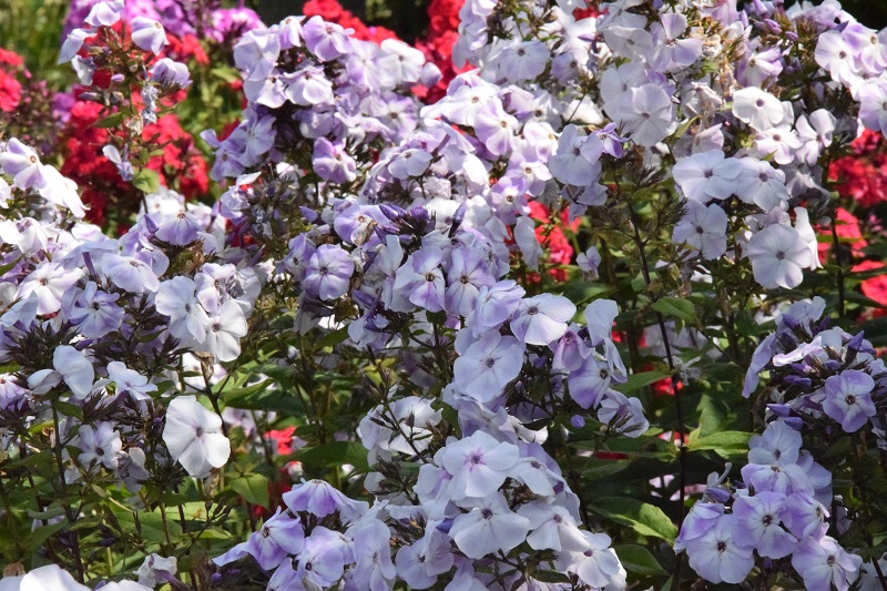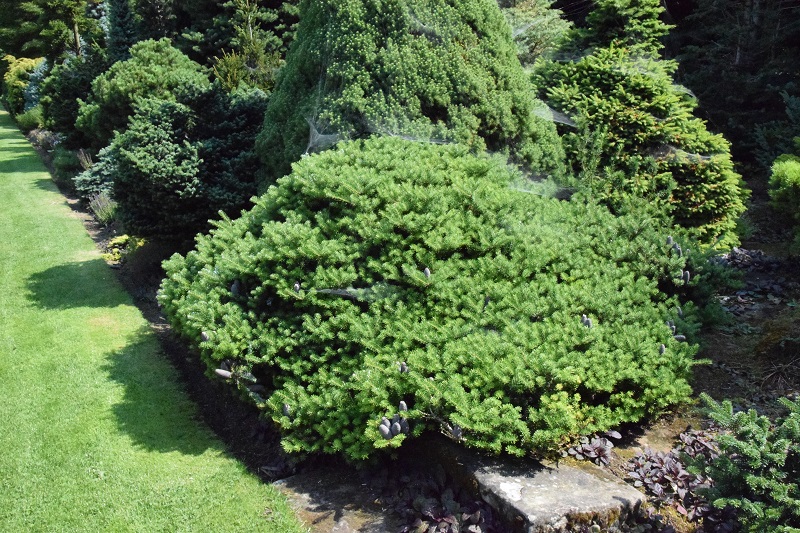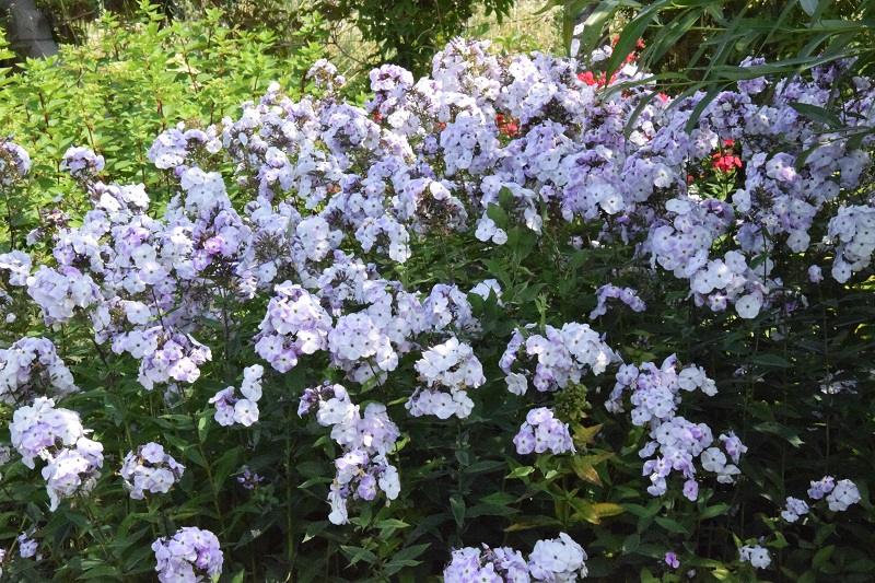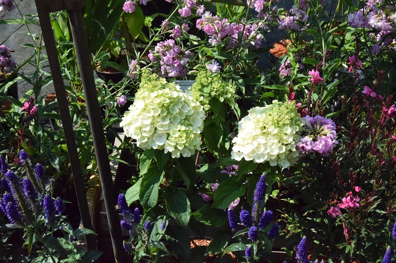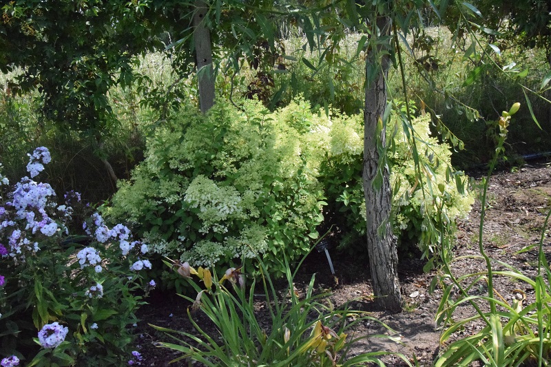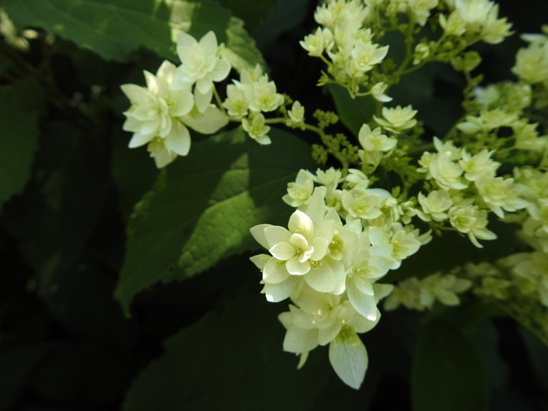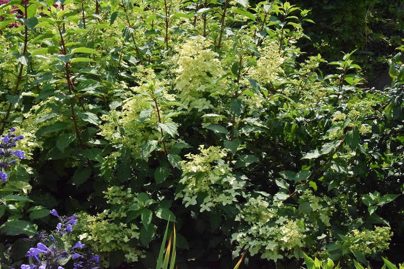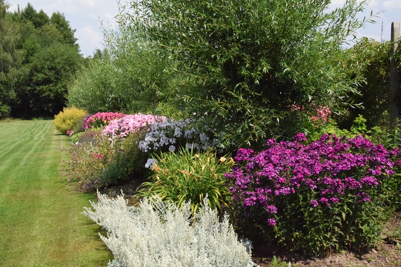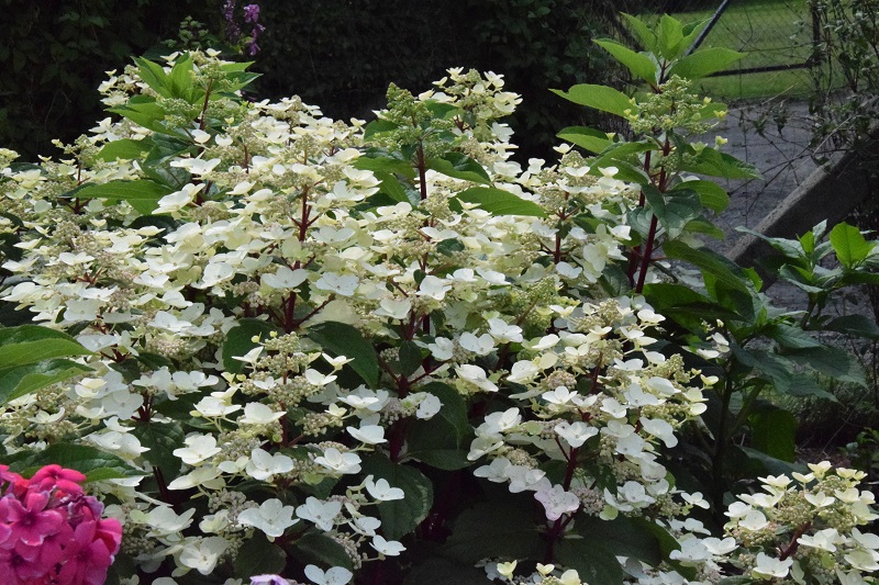 na wietrze, poprzez oszalamiające wiechy hortensji wkomponowanych między krzewy i drzewa, zarówno iglaste, jak i liściaste...