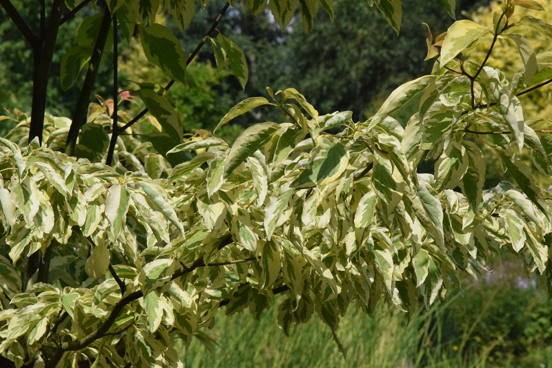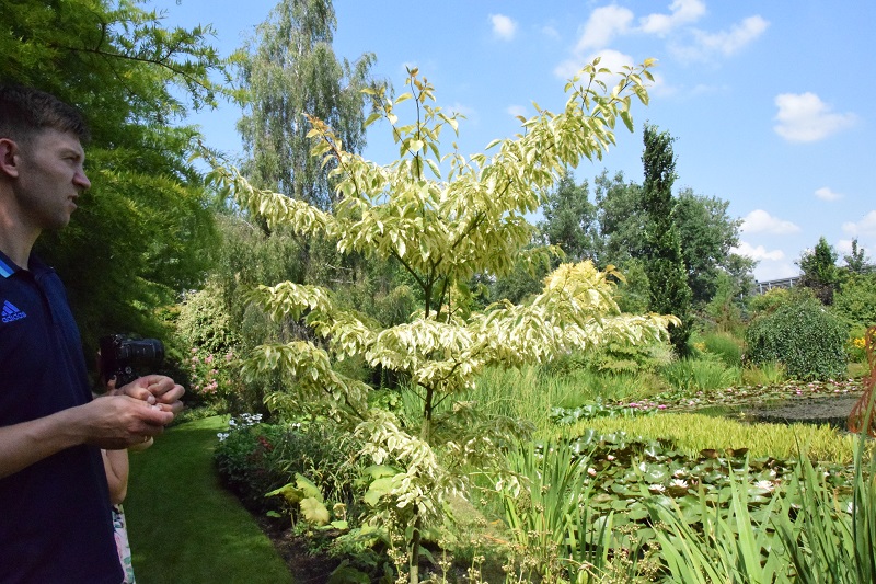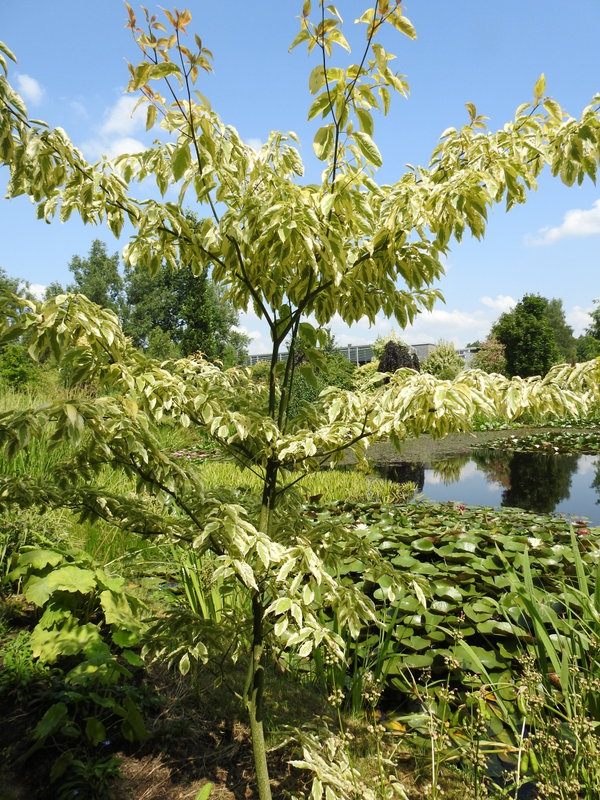 Wijące się aleje ponownie prowadzą nas do stawu. i tak chcialiśmy to wrócić, żeby uważniej przyjrzeć się cudnemu dereniowi :kocham . Pan Bronisław mówił, że to nowa odmiana derenia pagodowego (cornus controversa) 'Goldstar'. Niestety, w internecie nic nie znalazłam na jego temat :unsure: