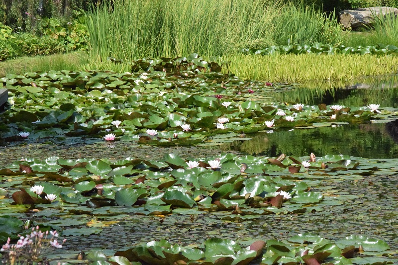 urzekają kompozycją i dostosowaniem do różnych warunków stanowiskowych panujących w ogrodzie... całość dopełniają cudowna murawa oraz obszerny staw, porośnięty liliami wodnymi i trzciną... a zwiedzający