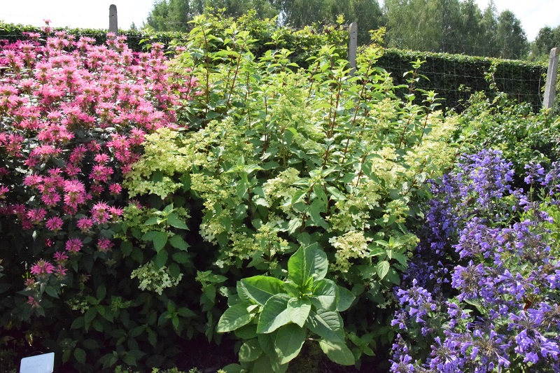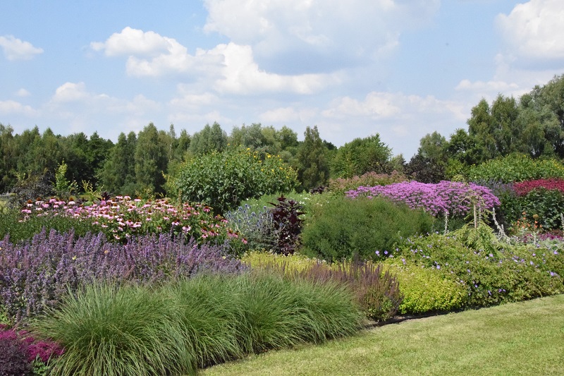 Sierpniowa odsłona ogrodu pokazowego w Pęchcinie to feeria barw i kolorów, począwszy od przepięknie pokazanych werben patagońskich komponujących się z perovskiami, floksami, rudbekiami i trawami falującymi