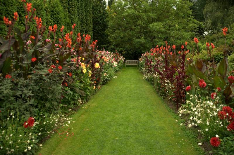 Kamienne ścieżki wśród kwiecistych rabat
