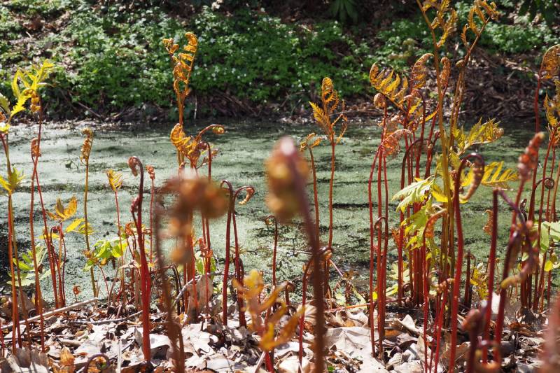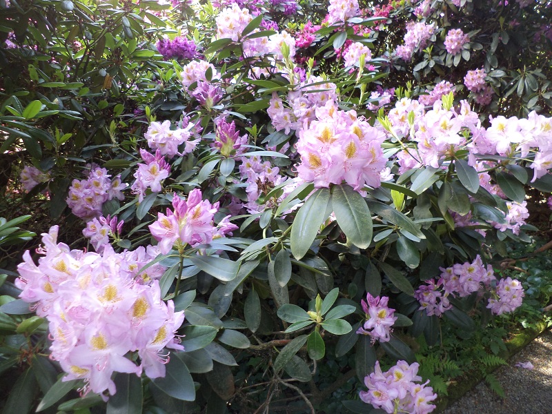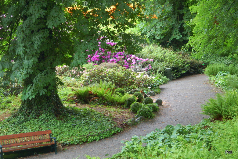 Korzystając, ze udaliśmy się na konsultacje dotyczące Dnia Paproci, zerknęliśmy też do starszej paprocianeo-rodkowej części ogrodu. Pogoda niestety, nie dopisała - mżyło, było dość ciemno i zimno. Tak, jak i w naszych ogrodach, w tym roku wiele azalii i różaneczników zakwitło wiele wcześniej, choć w tę niedzielę, gdy odbywac się będzie Święto Rododendronów, będzie jeszcze co wąchać i podziwiać.