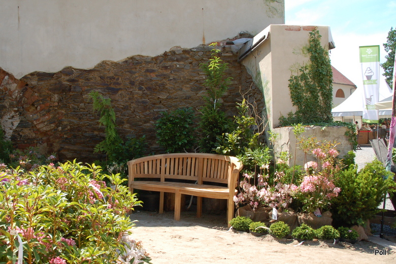 Mocnym punktem tego dnia miała być wystawa (ogród pokazowy), ale też nie do końca sprawa wypaliła. Ładnie zaaranżowana, ale cóż z tego , kiedy prezentowane rododendrony już niemal przekwitły? Byłam w Wojsławicach, gdy je przywieziono i akurat ustawiano w ruinkach - część już wtedy kwitła, część miała pękające pąki. W dniu RODOmanii, nie prezentowały się juz ciekawie.