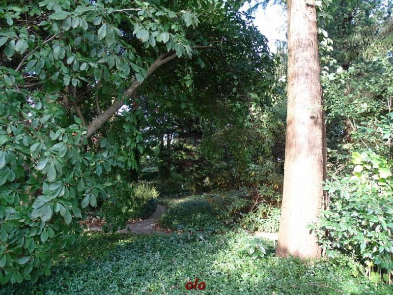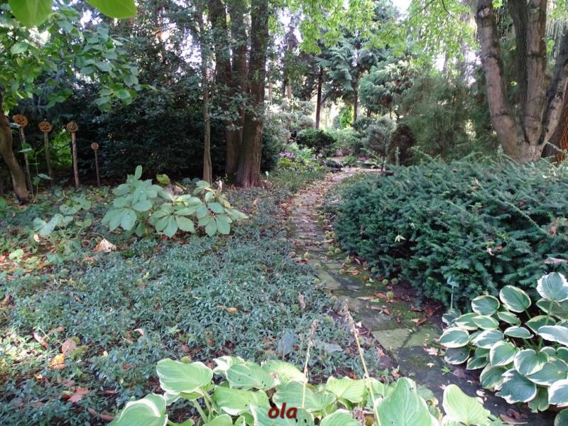 Można tu dostrzec imponujące w rozmiarach okazy drzew iglastych i liściastych, cudowne poszycie z dereni kanadyjskich, barwinka, paproci czy host.