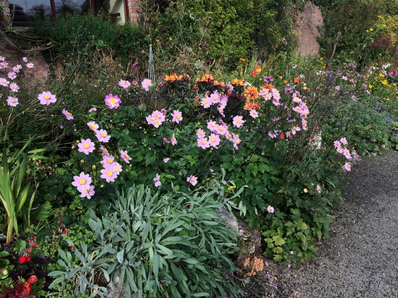 pierwsza część ogrodu, to bujne rabaty w stylu angielskim