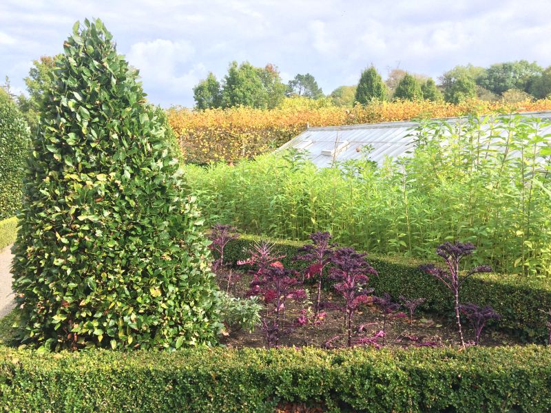 teren bezpośrednio przylegający do zamku otoczony był rabatami z formowanych cisów, oraz pieczołowicie wyciętych bukszpanowych labiryntów