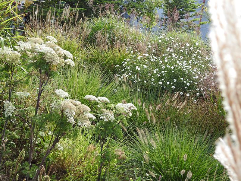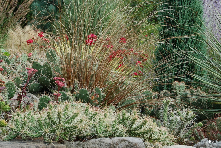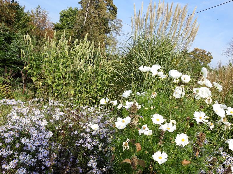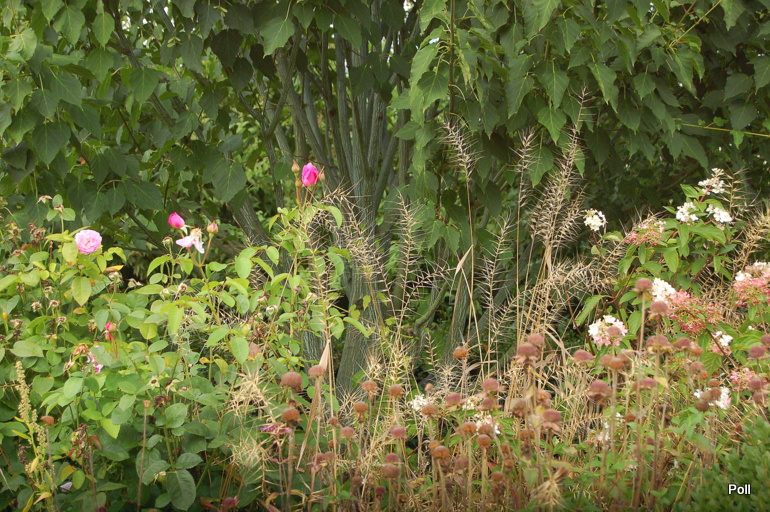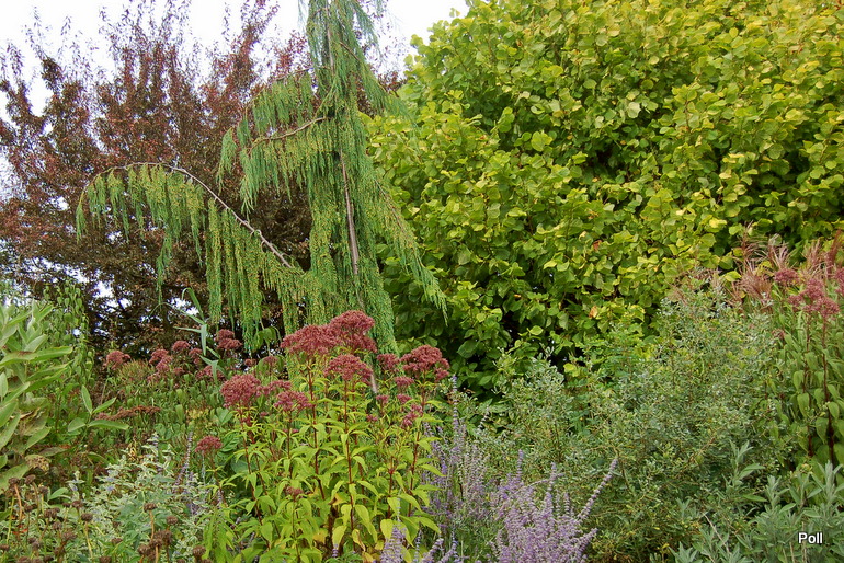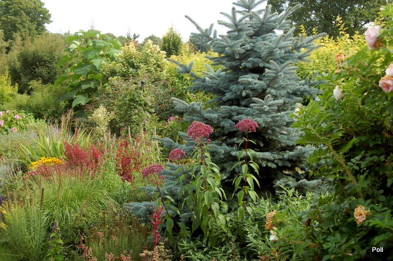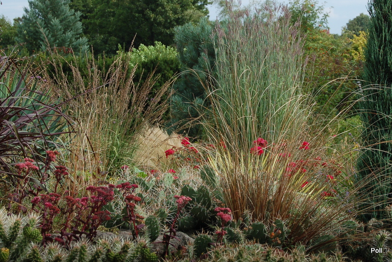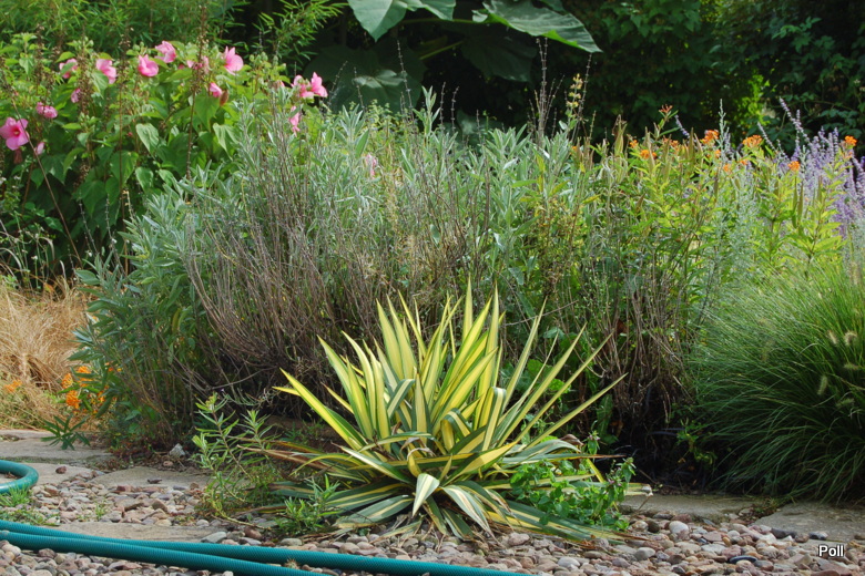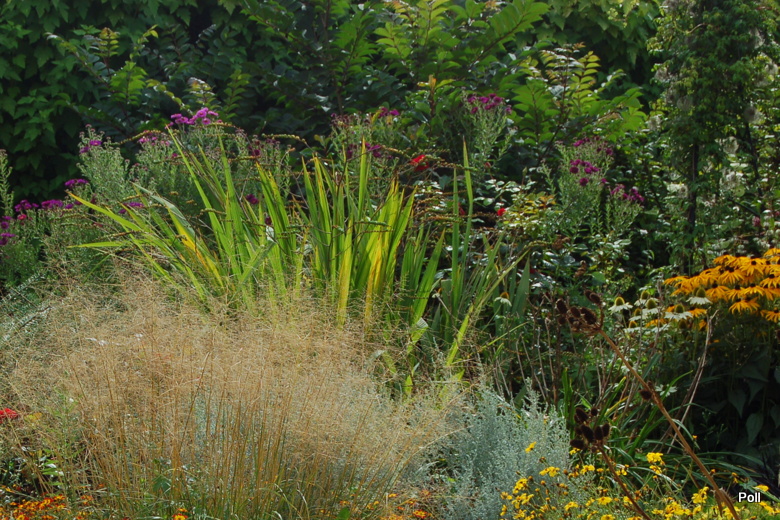 Oprócz roślin, które stale rosną w tej części, sezonowo umieszczane są chyba także inne, o mniejszej mrozoodporności, ale świetnie się z resztą komponujące