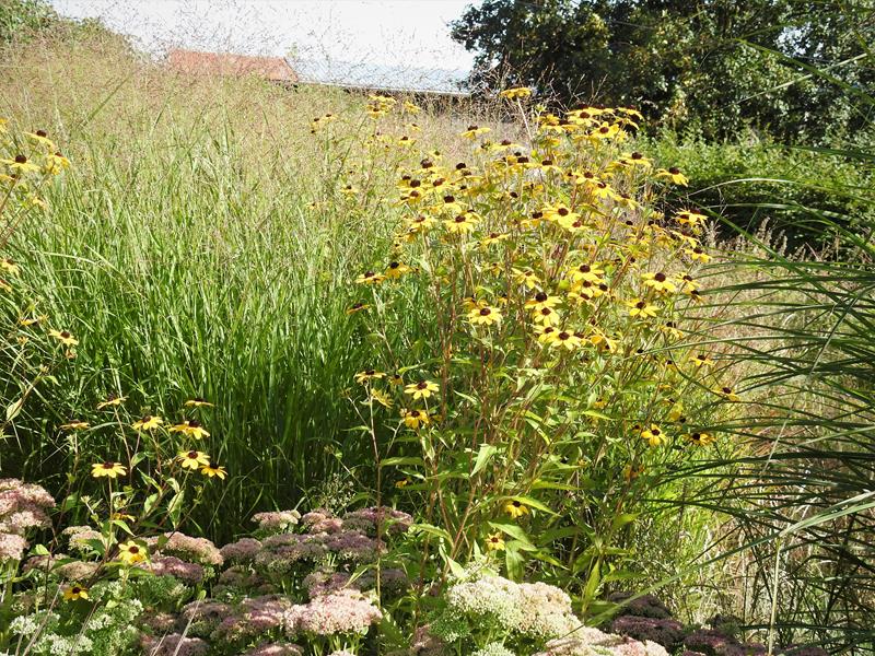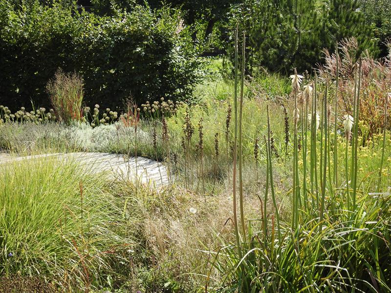 Ogród traw wydoroślał, ale mam wrażenie, że część bylin uzupełniających trawy wypadła