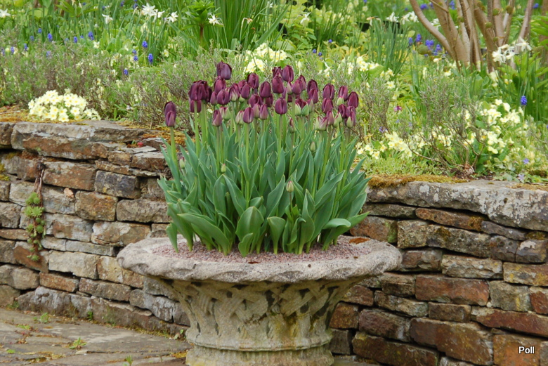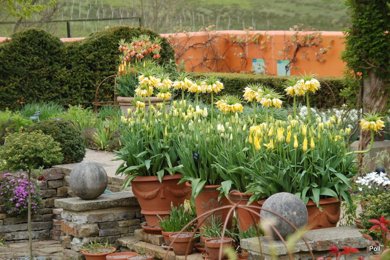 Poczatek maja, to przede wszystkim bogactwo roślin cebulowych, które w Harlow Carr są prezentowane nie tylko na rabatach, ale i w różnego rodzaju pojemnikach. Takie prezentacje są bardzo inspirujące i sama tez zaczęłam nasadzać cebulowe w donicach przed domem. Tulipany, narcyzy, korony cesarskie, irysy bucharskie , tulipany...to wszystko mozna podziwiac w kompozycjach ustawionych w róznych częściach ogrodu