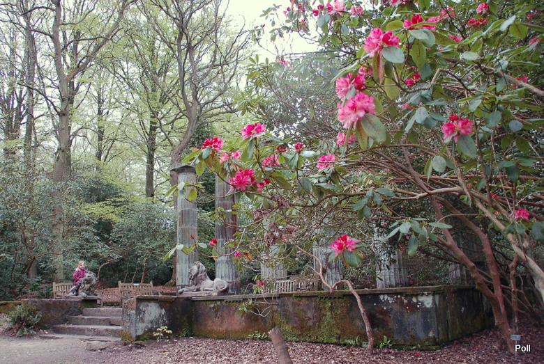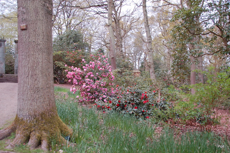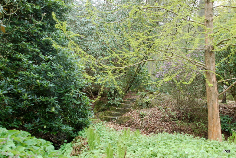 Musze przyznać, że nigdy nie udało mi się przejść całości ogrodu. Zazwyczaj spędzam najwięcej czasu w cenistej części w pobliżu strumienia, gdzie rosną rośliny najbardziej mnie interesujące. Zaglądam też na górkę, gdzie stoją ruiny z kolumnami a wokół rozciąga się istny raj dla wielbicieli rododendronów i kamelii.