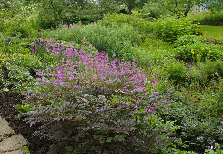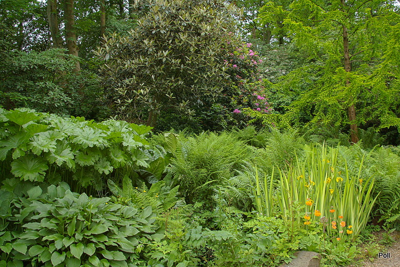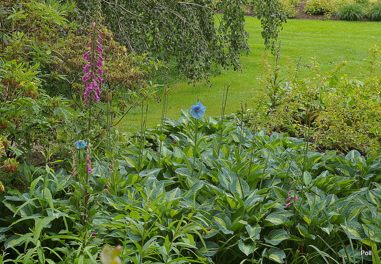 W niedalekiej odległości umieszczono zbiór kilkudziesięciu gatunków i odmian mekonopsów . W tym roku mekonopsy zostały zastapione hostami Praying Hands, gdyż to miejsce zrobiło się już zbyt cieniste