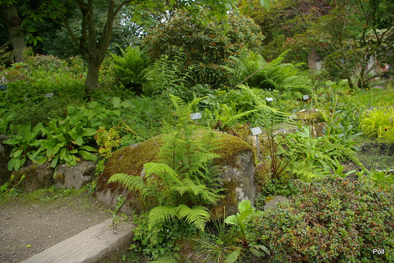 W pobliżu kamienia upamiętniającego pierwszego kuratora ogrodu, podziwiać mozna wspaniałe, bardzo wyrośniete egzemplarze długoszy królewskich (Osmunda regalis). My tez uprawiamy je w swoich ogrodach (wątek TU) , ale nasze warunki klimatyczne nie sprzyjają takiemu ich wzrostowi.