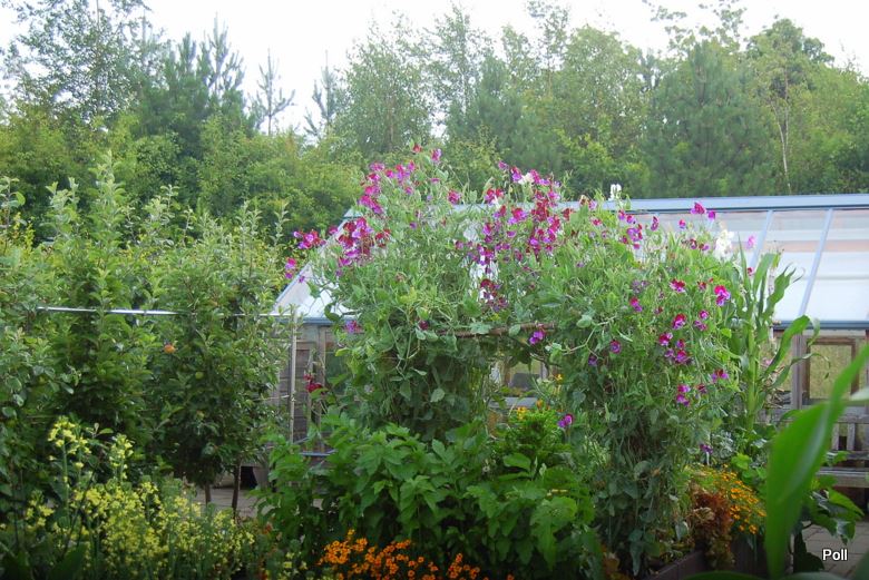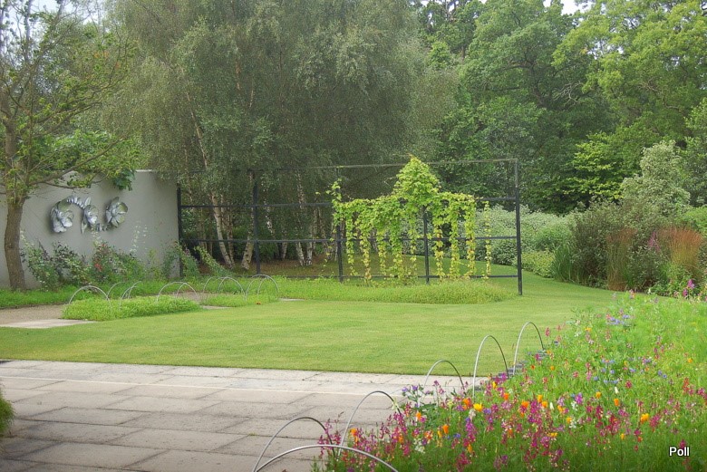 Kto przebywał choć kilka dni na Wyspach Brytyjskich, ten wie, że średni angielski ogródek jst wielkości około 2 arów :blink: , więc w części dydaktycznej, połozono nacisk na to, jak mozna wykorzystać tę powierzchnię maksymalnie, aby prócz roślin ozdobnych, móc hodować własne warzywa. W drewnianych skrzyniach zaprezentowano dobór warzyw do pojemników tak, by wzajemnie się wspomagały a nie przeszkadzały sobie. Wszystkie skrzynie są podpisane, aby można było spisać nazwy polecanych roślin.