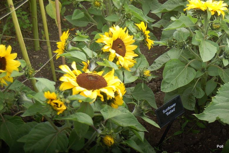 Przesuwając się w stronę ogrodu wiktoriańskiego, natykamy się na następna ekspozycję ogrodniczo-rolną. Jej temat jest za każdym razem inny. W tym roku, motywem przewodnim były odmiany ozdobne i jadalne słonecznika. Zgromadzono tu wiele jego odmian, od maluszków, po prawdziwe olbrzymy. Od wczesnych po późne jesli chodzi o termin kwitnienia i owocowania.