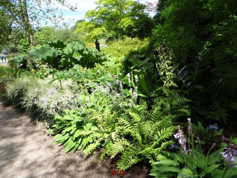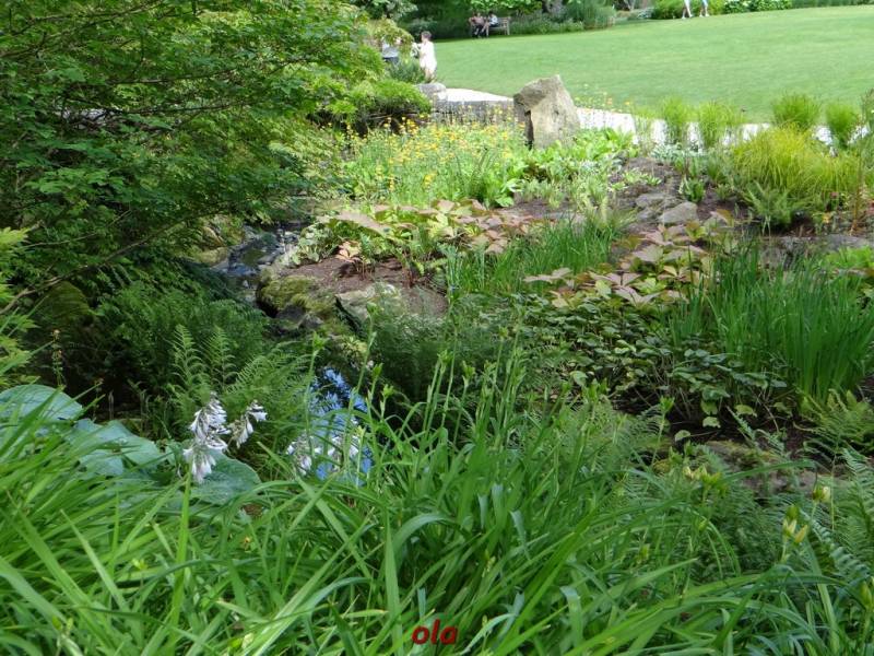 W tym maleńkim przedogródku zastosowane - jak widać - różne rośliny : zarówno na stanowiska słoneczne, jak i do cienia. Miło, że pomyślano również o paprociach