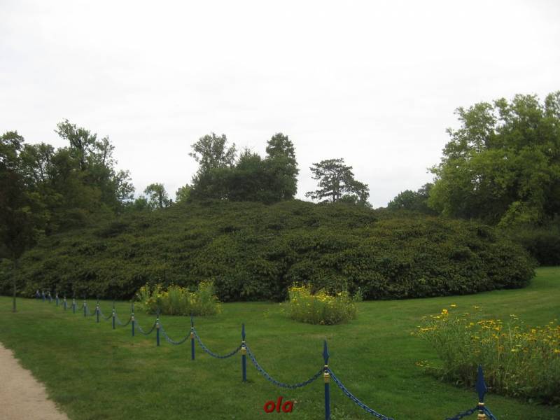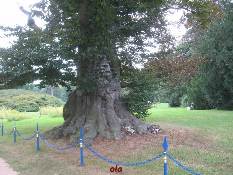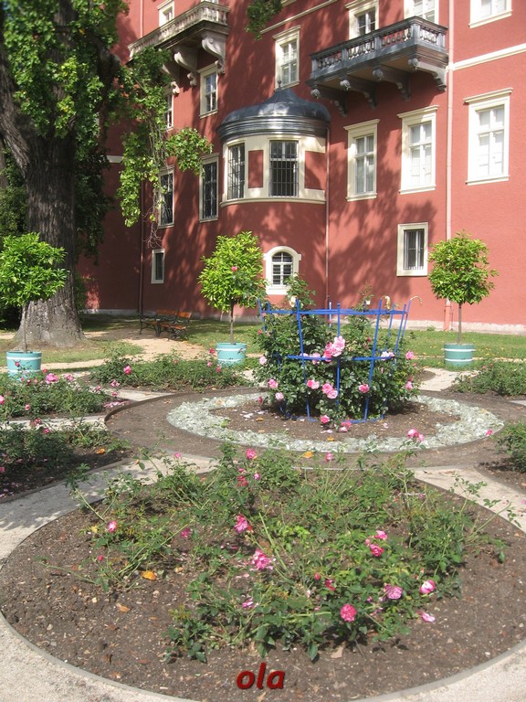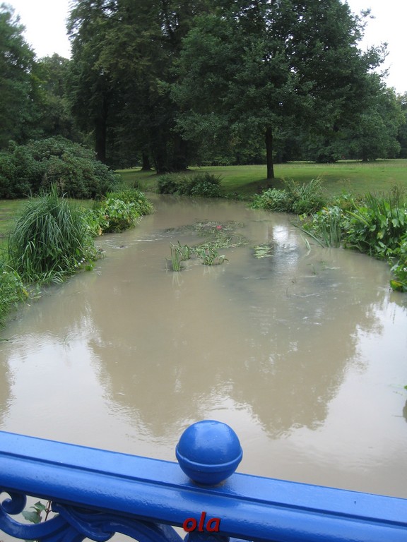Pałac i ogrody przypałacowe są na terenie Niemiec a rozległe łąki i laski na polskim terenie .