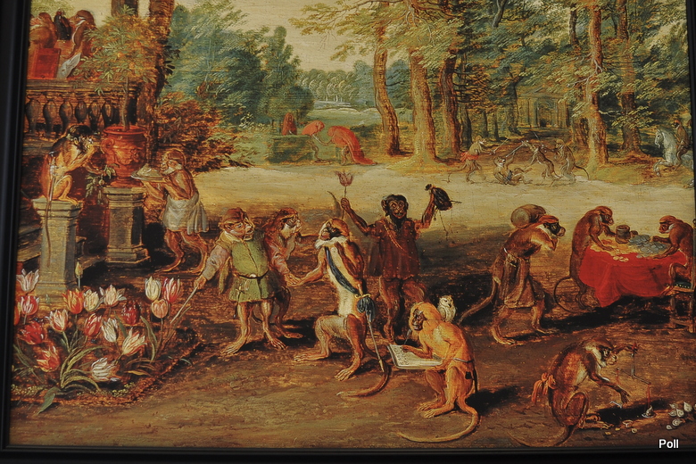 W kilku miejscach, jako tło kompozycji, wykorzystano obrazy holenderskich mistrzów pędzla m.in 'Mleczarkę' Jana Vermeera z roku 1658