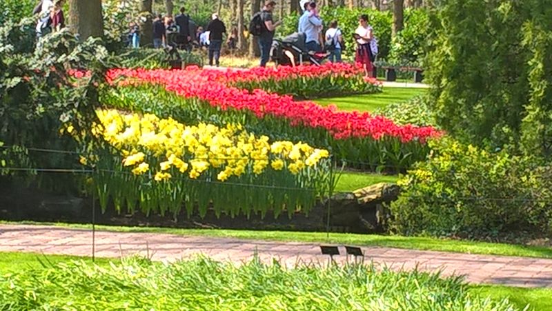Pogoda piękna, bardzo ciepło i słonecznie. Jak dla mnie za dużo ludzi.Ogród powinno się odwiedzić minimum trzy razy aby zobaczyć piękno poszczególnych roślin. Nie same tulipany czy hiacynty można tu podziwiać, jest mnóstwo pięknych drzew i krzewów, a także bylin.