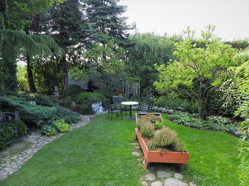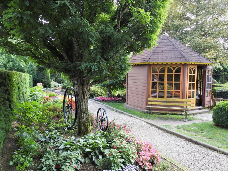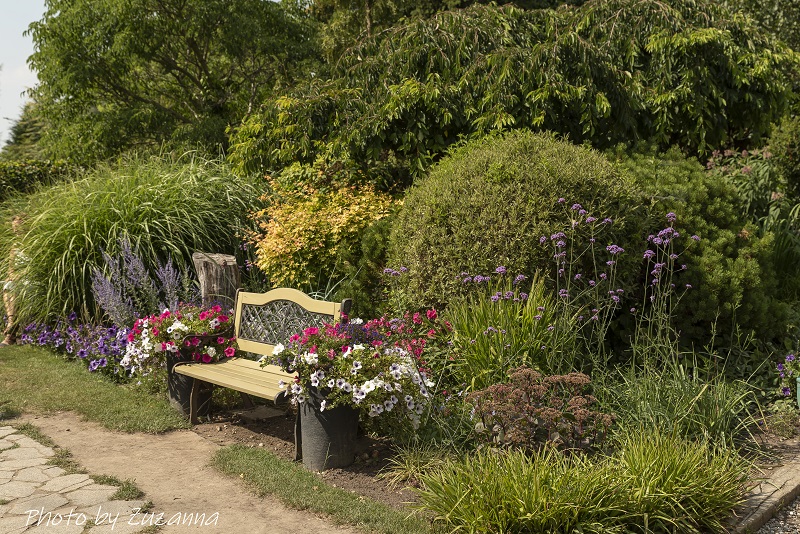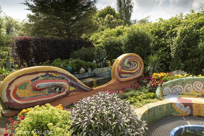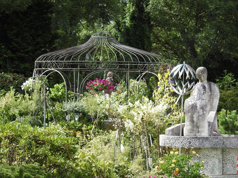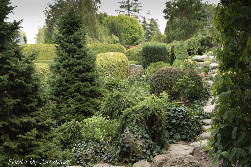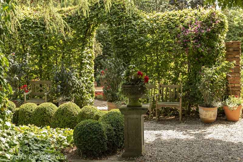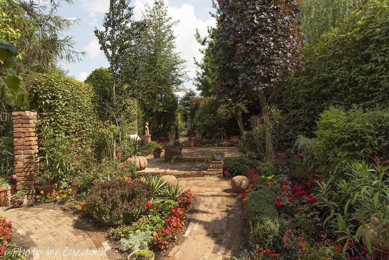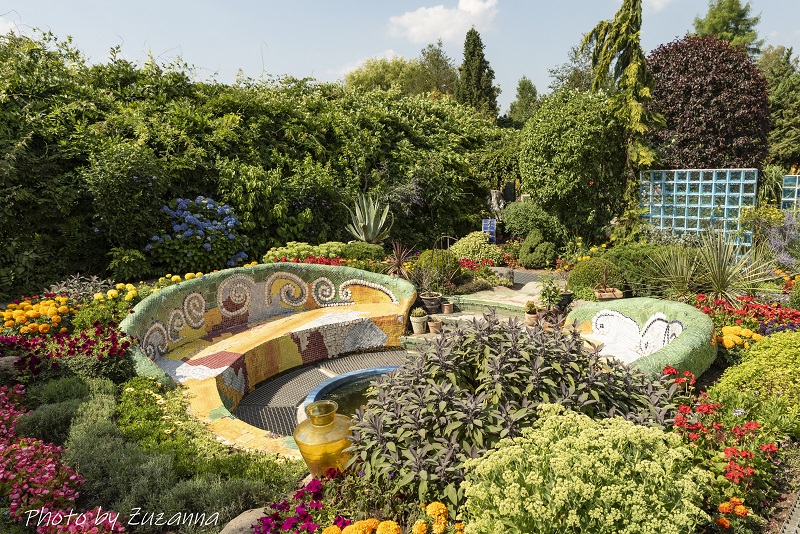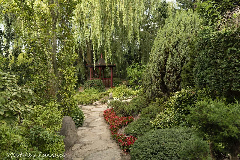 Całości dopełniają ciekawie wkomponowane elementy architektury ogrodowej, których nie brakuje w żadnym z ogrodów.