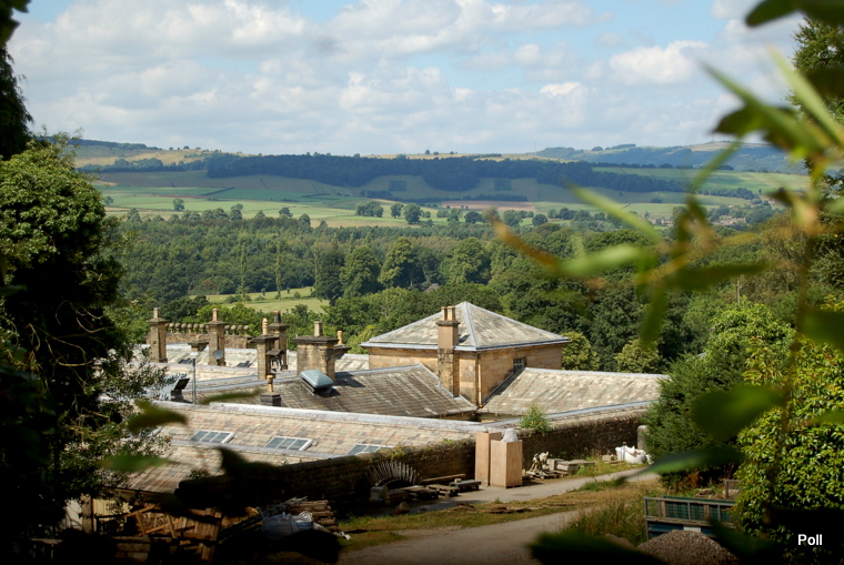 Piękne widoki na okoliczne wzgórza, właśnie z tej części ogrodu lubiła podziwiać Lady Cavendish, więc w miejscu, gdzie lubiła je podziwiać, wmurowano tablice pamiatkową
