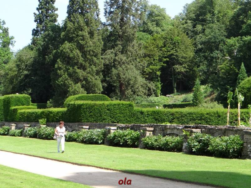 Po prawej mijamy pałac (był w remoncie) ze sklepem pamiatkarskim a po lewej mozemy podziwiac spoor szklarni, zarówno z roślinami ozdobnymi, jak i winogronami