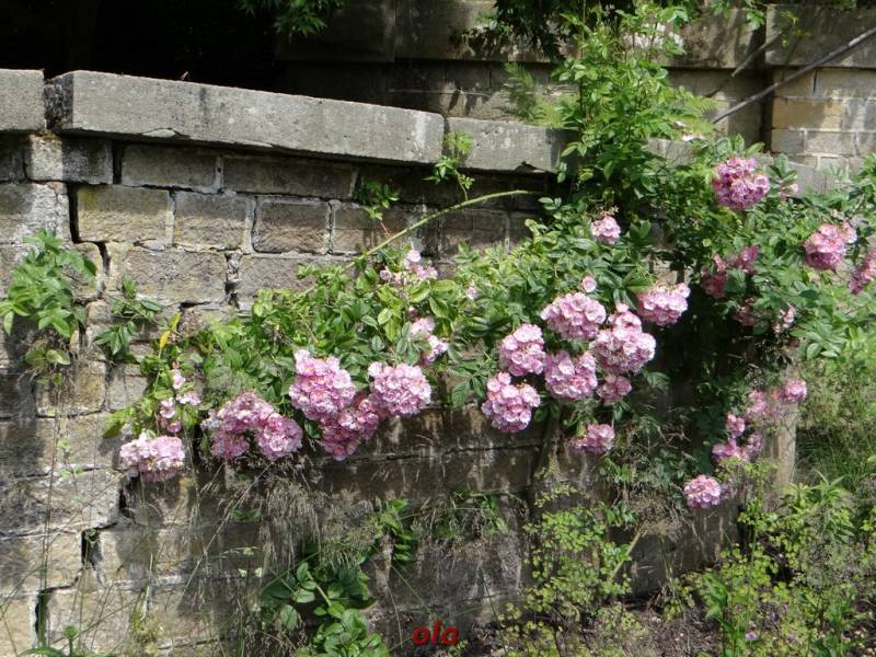 Piękna różanka . Róże posadzone w żywopłocikach z ziół ( głównie z kocimiętki ).